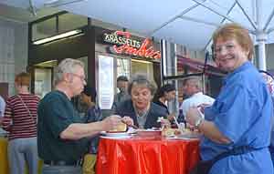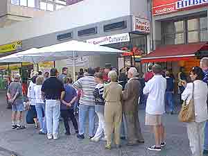 Ab 1961 verlegte Herbert Krasselt seinen, inzwischen größer gewordenen Anhänger, auf die gegenüberliegende Straßenseite des Steglitzer Dammes genau vor dem Kino "HÄSI". Inzwischen waren umfangreiche Umbauten auf dem Markt im Gange. Der Markt wurde überdacht und an ein Wohn- und Geschäftskomplex angeschlossen. Herbert Krasselt bekam einen festen Imbiss mit Glasfenstern am äußeren Eingang zum Markt. Im Mai 1969 wurde dieser eröffnet. Ich war jetzt 21 Jahre alt und an jedem Wochenende, wenn wir auf dem Weg zu unserer Diskothek "SWEET BEAT" in der Albrechtstraße waren, stoppten wir kurz bei "Krasselts Imbiss" um mindestens vier von unseren geliebten Curry- Würsten zu "inhalieren", wie es unter uns hieß. Ich kann mich noch an eine Episode erinnern, die sich zu dieser Zeit bei Krasselt abspielte. Einer von uns hatte an diesem Abend kein Geld in der Tasche und während wir uns unsere Würste "einpfiffen", stand er dabei und das Wasser lief ihm aus dem Mund. Auf einmal kam aus der Runde der Spruch "ich spendiere dir zwei Curry- Würste, aber nur, wenn ich sie würzen kann" Gesagt, getan. Schnell lagen die Würste auf dem Pappteller und sämtliche scharfen Gewürze kamen in größeren Mengen dazu. Als I-Tüpfelchen träufelte der Spendable noch eine viertel Flasche des gerade neu auf den Markt gekommenen Gewürzes "Tabasco" darauf. Der eingeladene Freund aß die beiden Curry- Würste, ohne mit der Wimper zu zucken. Nur die Tränen, die ihm dabei aus den Augen strömten, erzählten von seiner Qual, während er schluckte und wir uns halb totlachten. Am 1. März 1982 zog sich Herbert Krasselt aus seinem Imbiss zurück. Er übergab das Geschäft seinen Nachfolgern. Der Markt existiert schon lange nicht mehr, doch "Krasselts Imbiss", den gibt es noch heute. Obwohl an fast jeder Ecke Curry- Wurst- Buden zu finden sind, stehen die Leute noch heute in langen Schlangen bei "Krasselts Imbiss" an. Die Qualität der Wurst und vor allem die des Ketchups sind immer noch unübertroffen. Michael Lorenz |