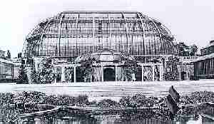 Gewächshaus mit den zwei Türmchen, das die Form einer romanischen